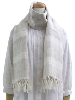 【素材】綿50%麻50% 【サイズ】180cm×48cm(フリンジ部分をのぞく)ストライプ ストール910277 さっとまくだけで首元が華やぐストライプストール。