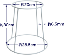 サイズ上面高さ:約30cm上面内径:約20cm底面外径:約28.5cmワイヤーの太さ:約6.5mm材質スチールにPE樹脂コーティング※食器はついていません。