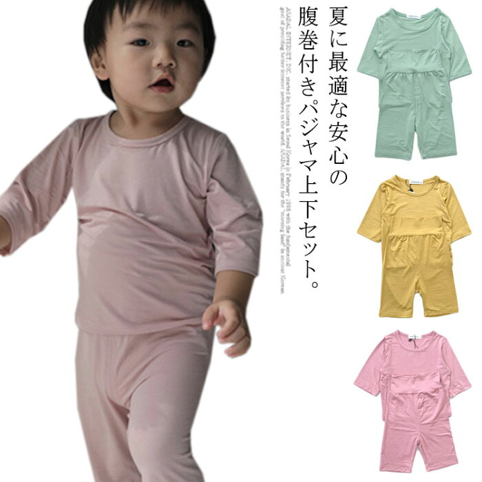 子供パジャマ ルームウェア ベビーパジャマ キッズパジャマ セットアップ 無地 五分袖 腹巻付き ハーフパンツ ショートパンツ 半ズボン 女の子 男の子 送料無料 薄手 夏用 涼感 涼しい 爽やか 73 80 90 100 110 120 130