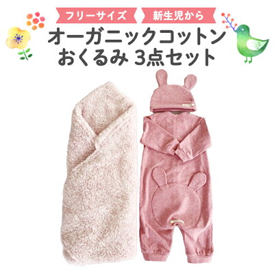 【ふるさと納税】(ピンク系)オーガニックコットンおくるみ3点セット オーガニックコットン 新生児 ギフト 出産祝い おくるみ ベビー プレゼント 名入れ おしゃれ 男の子 女の子