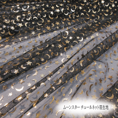 【衣装生地】ムーンスターチュールネット箔生地【チュール ゆめかわいい 月 星 キラキラ クラシカル モノトーン ドレス おゆうぎ会 Halloween ハロウィン 仮装 衣装 コスプレ 透け感 ディスプレイ ラッピング 手作り ハンドメイド】