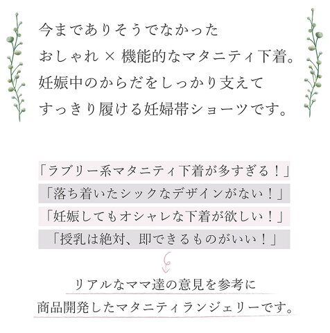 メーカー希望小売価格はメーカーカタログに基づいて掲載しています ラクにはけてしっかりサポート妊婦帯マタニティショーツ 商品説明 今までありそうでなかった、おしゃれデザインの妊婦帯付きマタニティショーツ。