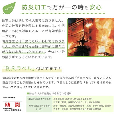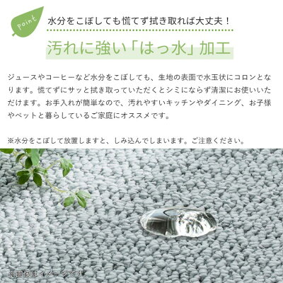 はっ水効果で汚れにも強い機能充実シンプルカーペット 防炎機能付きだからもしもの時も安心ミックスカラーパイルカーペット 同系色のミックスカラーパイルだから汚れが目立ちにくい! 端は丁寧にロック加工が施されています。