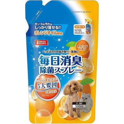 【名称】犬猫用品【販売者】株式会社マルカン マルカン事業部 【原材料・材質名】精製水、植物抽出物(果実由来)【内容量】500ml【原産国】中国「毎日消臭除菌スプレー」ボトルに詰め替えてご使用ください。