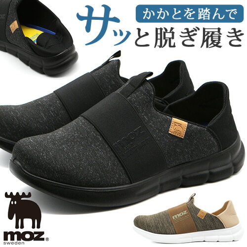 【11%OFFセール 9/11 1:59まで】 モズ スリッポン シューズ メンズ スニーカー 靴 黒 ブラック ベージュ かかとが踏める 2WAY クッション性 北欧 通勤 通学 おしゃれ シンプル ブランド moz 2227