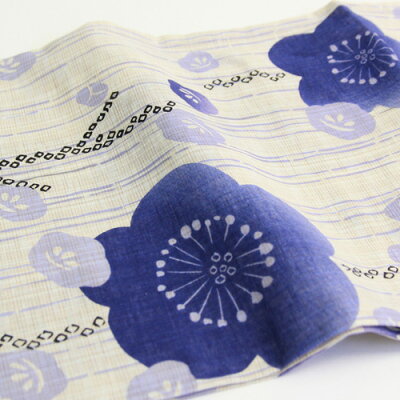 浴衣 単品 レトロ 高級変わり織り綿麻浴衣単品「生成り地に青紫の縞とレトロ梅」浴衣 生成り 梅 レディース 古典柄 大人 モダン しっとり