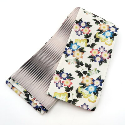 帯 小袋帯 正絹 半幅帯 日本製 リバーシブル 着物 浴衣 グラデーション 半巾帯 帯 半幅帯 文様 花柄 竜胆 リンドウ りんどう 青 ブルー 紫 パープル ピンク 白 ホワイト イエロー ストライプ 縞 レトロ 大正浪漫 モダン 和柄
